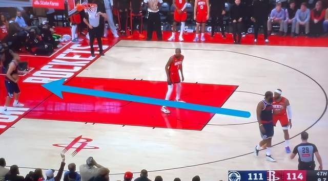 当时哈登身边奥科吉紧紧贴着,杜兰特又在巴图姆和哈登之间,随后准备包夹和切断传球路线。此外,还有一个关键点,那就是快船没有暂停,一旦哈登跑出来接球,火箭也会选择主动犯规,意味着没有投三分的机会。而哈登不接球,只等待着第二点的机会,这个战术此前也是出现过,当时面对凯尔特人(最后也落后3分),祖巴茨前场接到球,立马传给哈登,成功得到了三分出手机会,上次的战术是非常成功的,只是这一次未能实现罢了。