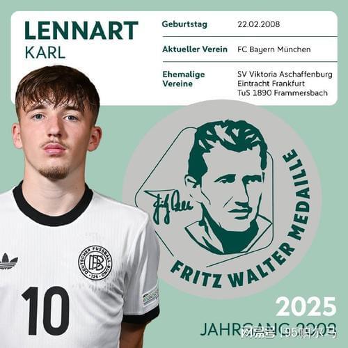 媒体喜欢趁热打铁式造星,以至于将卡尔形容为“例外级球星”,拜仁有顺水推舟的眼力,提拔到一线队只是其中一个节点。2024-25赛季的卡尔在拜仁青年队出尽了风头,累计为U17和U19梯队打进了34球,其中在U17中,身高1米68的卡尔俨然是火力全开的模式——18场比赛中贡献27粒进球和11个助攻。
